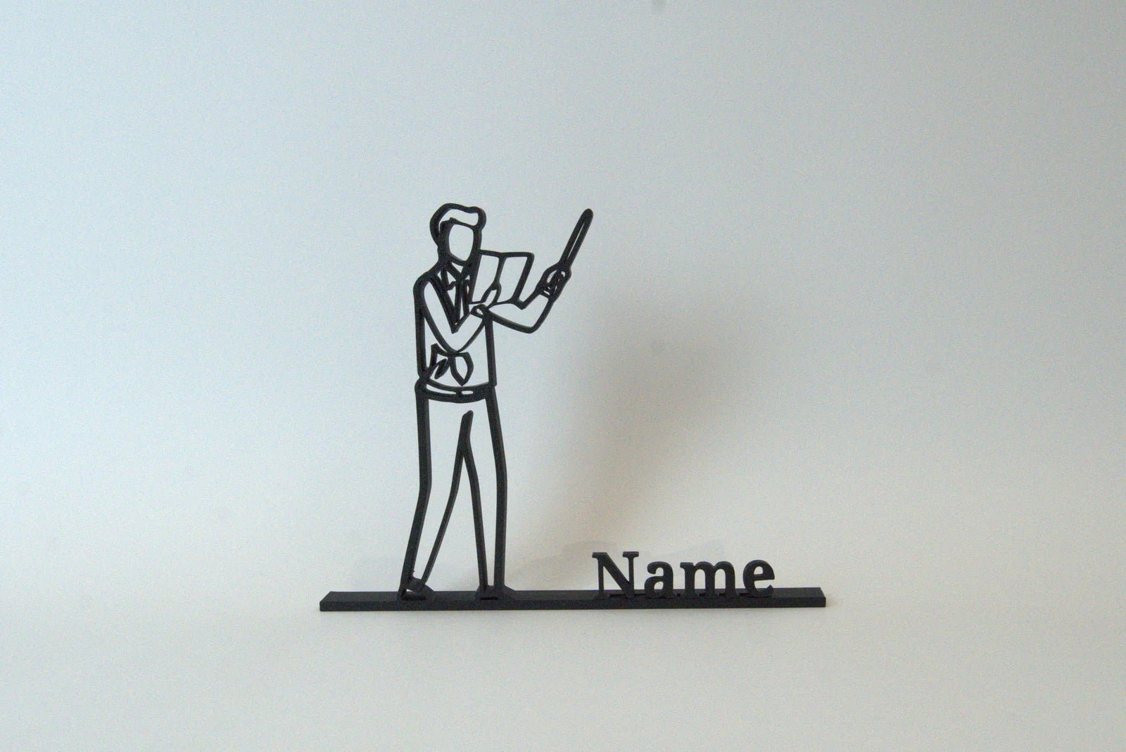 Rinde homenaje al trabajo y la vocación de los educadores con la figura personalizada “Profesor”, una pieza moderna que representa la dedicación y el compromiso con la enseñanza. Su diseño minimalista y estilizado la convierte en un regalo único para maestros, mentores y profesores.